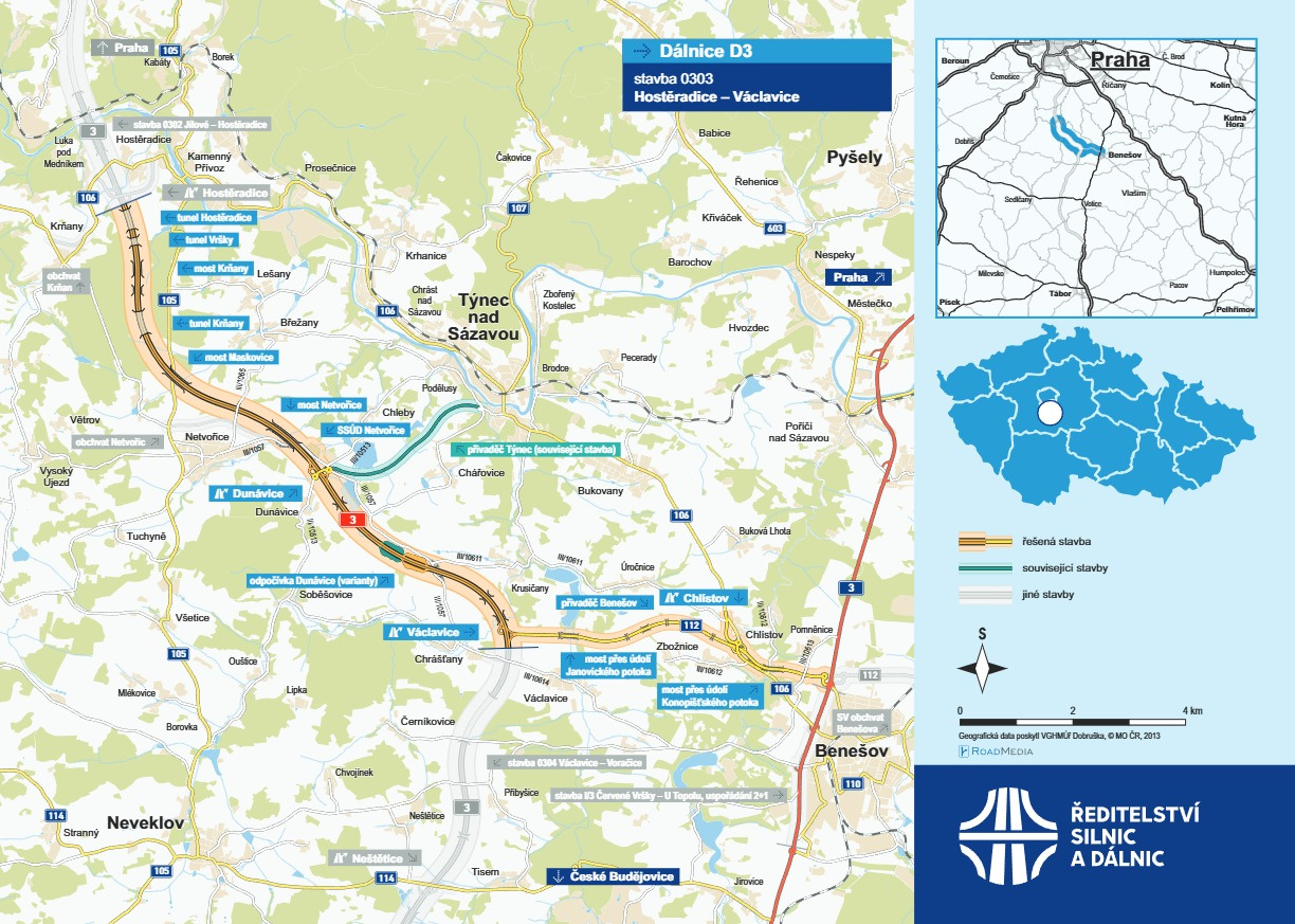 Stavba úseku Hostěradice – Václavice středočeské části dálnice D3 má být zahájena v roce 2028 a o čtyři roky později uvedena do provozu. Předpokládané náklady činí 14,5 miliardy Kč bez DPH. Nyní probíhá geodetické oddělování hranic pozemků pro tvorbu geometrických plánů a znaleckých posudků. Majetkoprávní příprava je zahájena, běží rozesílání návrhů kupních smluv. Připravují se i podklady pro archeologický a pyrotechnický průzkum.
