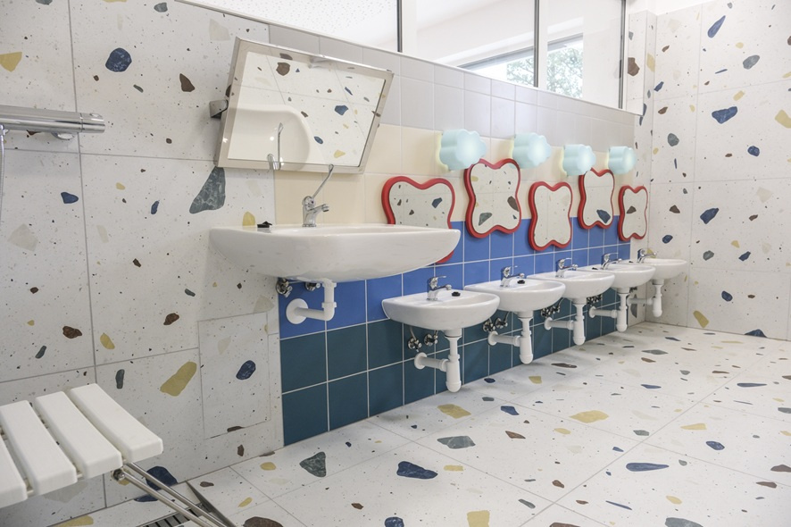 Pro děti je připravena prostorná herna, kterou lze elektronicky oddělit závěsem na klidovou část pro odpolední odpočinek. Moderní vybavení zahrnuje dataprojektor, zabudované reprosoustavy a protihlukové rastry, které nejen tlumí hluk, ale eliminují zvukové odrazy od stěn a přispívají k pohodlí i koncentraci dětí a učitelů. Učitelky mají k dispozici sborovnu a šatnu se zázemím. Okolí školy prošlo sadovými úpravami. Kompletní revitalizaci dětského hřiště se připravuje.