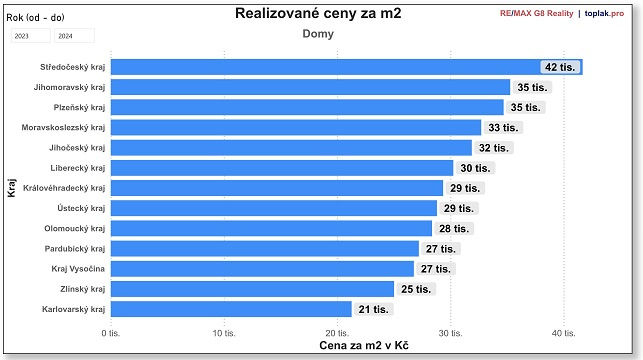 „Musíme však vnímat velké regionální rozdíly. Vývoj cen rodinných domů byl ve všech regionech velmi podobný, s malými rozdíly. Ale v Praze a jejím okolí byl vývoj specifický. Ve Středočeském kraji ceny rodinných domů v roce 2023 výrazněji klesly než jinde a v roce 2024 nedošlo k nárůstu. V roce 2024, v 1. pololetí činila průměrná cena 64 tisíc Kč za m2 nebo 10,1 milionu Kč za dům,“ líčí analytik a realitní makléř Re/Max G8.Iztok Toplak.