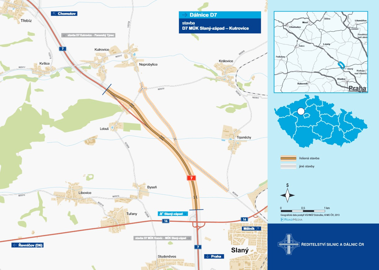 Dálnice D7 na trase Slaný-západ – Kutrovice přijde na 530 mil. Kč