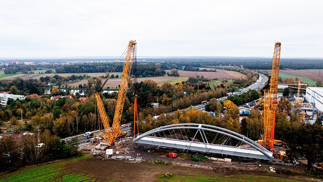 Dálnici D10 u Brandýsa nad Labem překlene o tomto víkendu nový železniční most. Jeho oblouková ocelová konstrukce má rozpětí 68 metrů a umožní budoucí rozšíření vytížené silniční komunikace o třetí pruh v každém směru. Vlaky z Čelákovic do Brandýsa začnou využívat nové přemostění už na konci října. Náklady činí 154,3 milionu Kč.