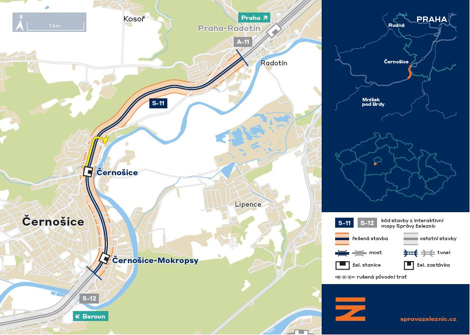 Správa železnic pokračuje v přípravě modernizace trati z Prahy do Berouna. Nyní vybrala zhotovitele projektové dokumentace pro úsek mezi pražským Radotínem a budoucí odbočkou Berounka. Stavební práce se plánují v letech 2026 až 2029, výsledkem bude nejen zrušení několika přejezdů, ale také zvýšení traťové rychlosti. Předpokládané celkové investiční náklady dosahují 3 miliardy korun.