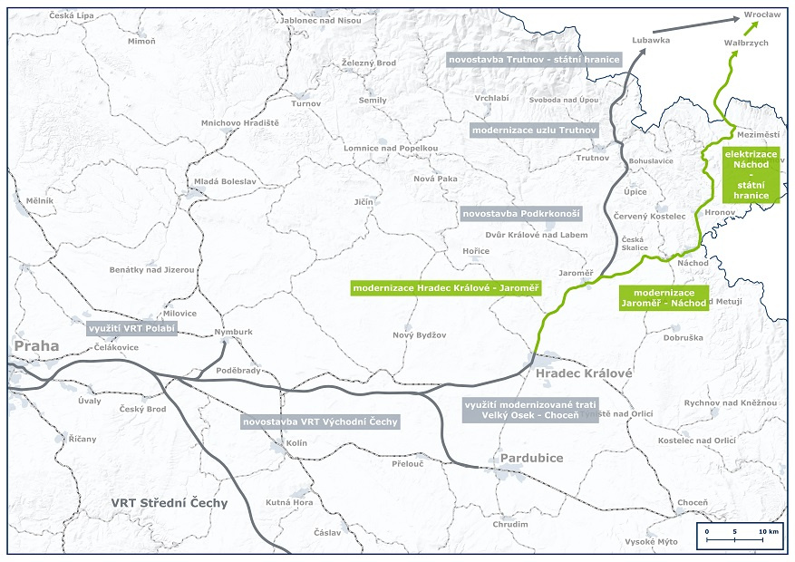 Správa železnic může pokračovat v projektové přípravě modernizace klíčových tratí na sever od Hradce Králové ještě před projednáním studie proveditelnosti rychlého spojení RS5 Praha – Wroclaw. Výjimku schválila Centrální komise Ministerstva dopravy. Studie proveditelnosti RS5 totiž obsahuje kromě vysokorychlostních úseků i konvenční tratě na území Královéhradeckého kraje.