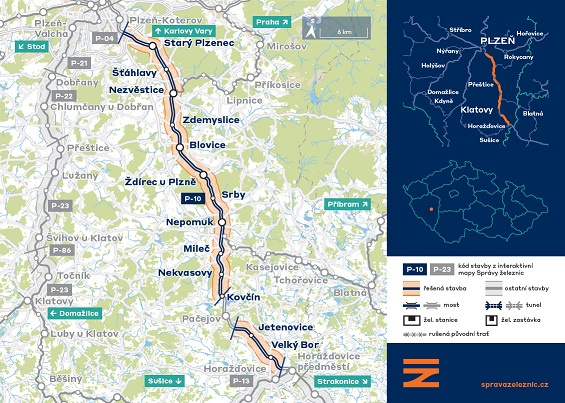 Správa železnic hledá projektanta modernizace úseku z Plzně-Koterova do stanice Horažďovice předměstí. Nejvyšší přípustná nabídka činí 228,8 milionu Kč. Stavební práce na vytížené spojnici západních a jižních Čech se plánují v letech 2027 až 2030. Výsledkem bude plně dvoukolejná trať pro rychlost až 160 km/h. Předpokládané celkové náklady dosahují 14,1 miliardy korun.