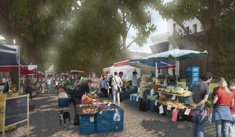 „Současný stav je výsledkem postupných nesystematických úprav a neodpovídá vytíženosti ani zájmu o lokalitu. Našim cílem byl koncepční přístup k revitalizaci náměstí, vznikne ucelený veřejný prostor, posílí navíc pěší prostupnost, zlepší se stav zeleně i bezpečnost obyvatel,“ říká náměstek primátora Petr Hlaváček. „Po revitalizaci se budou moci Pražané těšit na větší množství vysazených stromů, a to konkrétně 140 kusů. Volíme druhy dřevin, které budou lépe zvládat měnící se podmínky v letních měsících, a zároveň zlepšíme jejich zálivku s pomocí závlahového systému. Na konci roku 2025 bude náměstí osázeno 240 stromy,“ dodává náměstkyně Jana Komrsková. Vítězný návrh revitalizace náměstí pochází od ateliéru MCA.