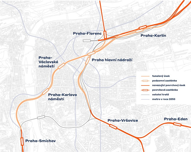 Kapacita každého tunelu bude až 16 vlaků za hodinu v každém směru. „Vzniknou podzemní zastávky v Karlíně, na Václavském náměstí a Karlově náměstí a také částečně zahloubená zastávka na Florenci. Nové trasy pomohou oddělit dálkovou a regionální dopravu. Tím se udrží komfort cestování, navíc při minimálním dopadu na životní prostředí.,“ přibližuje ředitel odboru přípravy staveb Správy železnic Pavel Paidar.