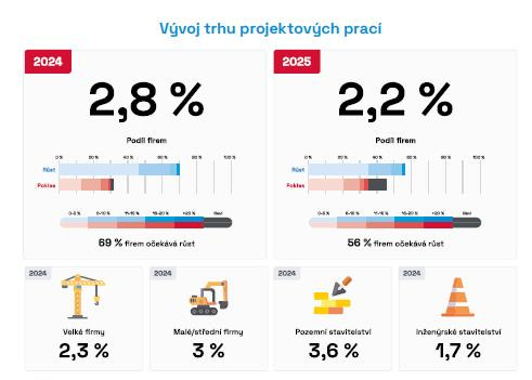 Průzkum: Projektové práce letos porostou o 2,8 %, příští rok o 2,2 %