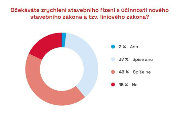Pouze 2 % oslovených ředitelů stavebních firem očekávají výrazné zrychleni stavebních řízení po změnách ve stavebním zákoně, zatímco 37 % dotázaných je k novinkám opatrně optimistických a 61 % skeptických. Je podle nich pravděpodobné, že se zákon po uvedení do praxe bude ještě dále měnit a upravovat tak, aby lépe naplnil svůj účel a očekávané změny byly skutečně v praxi znatelné. Vyplývá to z Kvartální analýzy českého stavebnictví Q1/2024 CEEC Research.