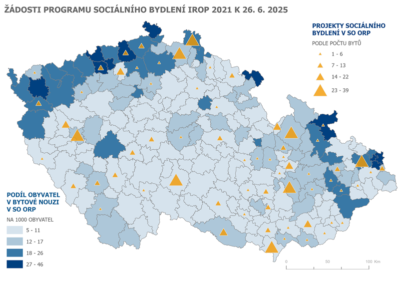 Rozmístění projektů zatím plně neodpovídá potřebám v jednotlivých regionech. Vznikají spíše náhodně, než aby se soustředily do oblastí s největší bytovou nouzí. Tento stav ovlivňuje rozdělení výzev podle typů regionů. Další výzvy na projekty sociálního bydlení IROP číslo 101, 102, 115 a 116 jsou otevřené do února 2026. Ve všech výzvách jsou zatím volné prostředky přes 530 milionů korun, z toho téměř 300 milionů spadá do výzvy 115 pro méně rozvinuté regiony.
