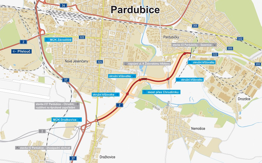 Jihovýchodní obchvat pomůže odvést významnou část tranzitní dopravy z oblasti pátého obvodu. „Pomůže snížit dopravní zatížení v centru města, kterým denně mimo jiné projíždí i nákladní auta směřující do průmyslového centra v Černé za Bory,“ říká primátor Pardubic Jan Nadrchal. „Obchvat povede od křižovatky v Dražkovicích až po okružní křižovatku v Pardubičkách. Vznikne celkem 3100 metrů nové silnice, včetně 10 mostů o celkové délce 218 metrů,“ přiblížil náměstek primátora Jan Hrabal.