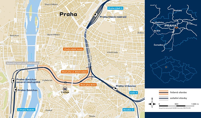 Správa železnic připravuje zkapacitnění frekventované trati mezi pražským hlavním a smíchovským nádražím. Nyní vyhlásila výběrové řízení na projektanta úprav úseku mezi jižním vyústěním vinohradských tunelů a začátkem výtoňského mostu s předpokládanou cenou 108,5 milionu Kč bez DPH. Vlaky budou moci nově využívat tři koleje v delším úseku. Přínosem pro obyvatele podél železnice bude nejen tišší provoz vlaků, ale také rozšíření několika podchodů pod tratí. Stavět se bude v letech 2026 až 2028.