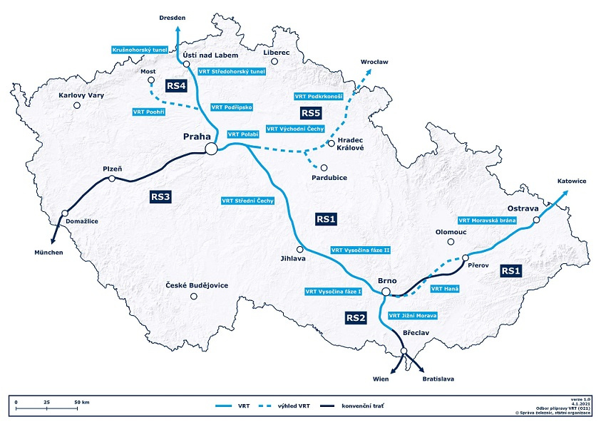 Projekt VRT Moravská Brána je novostavba vysokorychlostní trati mezi Brodkem u Přerova a stanicí Ostrava-Svinov je základní částí rychlého spojení mezi Brnem a Ostravou. Významně zkrátí čas vlakem mezi střední a severní Moravou. Například z Olomouce do Ostravy se bude možné dostat za 30 minut oproti dnešním 50 min. VRT Jižní Morava je součástí mezinárodního spojení ČR s Rakouskem a Slovenskem, mezi Brnem a státní hranicí u Břeclavi. Významně zkrátí čas vlakem mezi střední a severní Moravou. Například z Brna do Vídně či Bratislavy se bude možné dostat za hodinu oproti dnešní hodině a půl. Projekt rychlých spojení (RS) Střední Morava mj. výrazně zkrátí cestovní doby na trasách Brno – Ostrava, Brno-Olomouc a Brno-Zlín, na rameni Brno-Přerov až na 30 min oproti dnešní hodině a čtvrt.