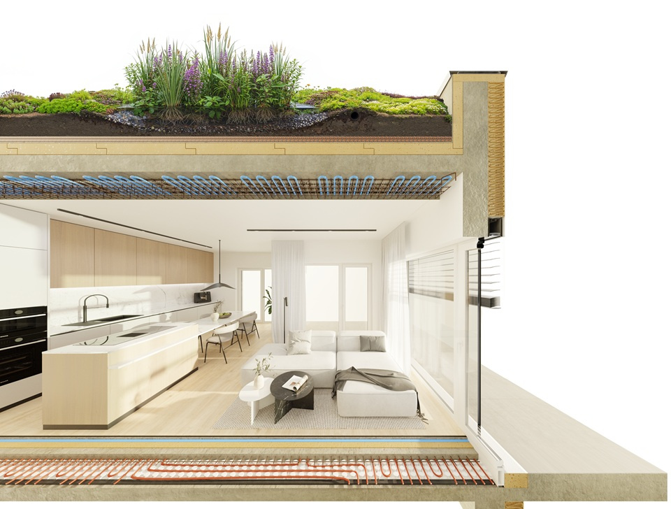 Inovativní rezidenční komplex Terra Barrandov využívá tepelná čerpadla země-voda s hlubinnými vrty, které vyrábí teplo efektivněji než plynový kotel. O příjemné klima se postará podlahové vytápění a dochlazování, řízené větrání s rekuperací, předokenní žaluzie a nadstandardní akustické vlastnosti bytových příček, podlah a stropů. „Reagujeme na rostoucí poptávku po moderním a kvalitním městském bydlení s přírodou na dosah. Klientům chceme nabídnout nejen byt, ale celkový životní styl – kombinaci komfortu, přírody, designu a dobré dostupnosti s minimálními energetickými nároky,“ říká ředitelka JRD Naděžda Ptáčková.