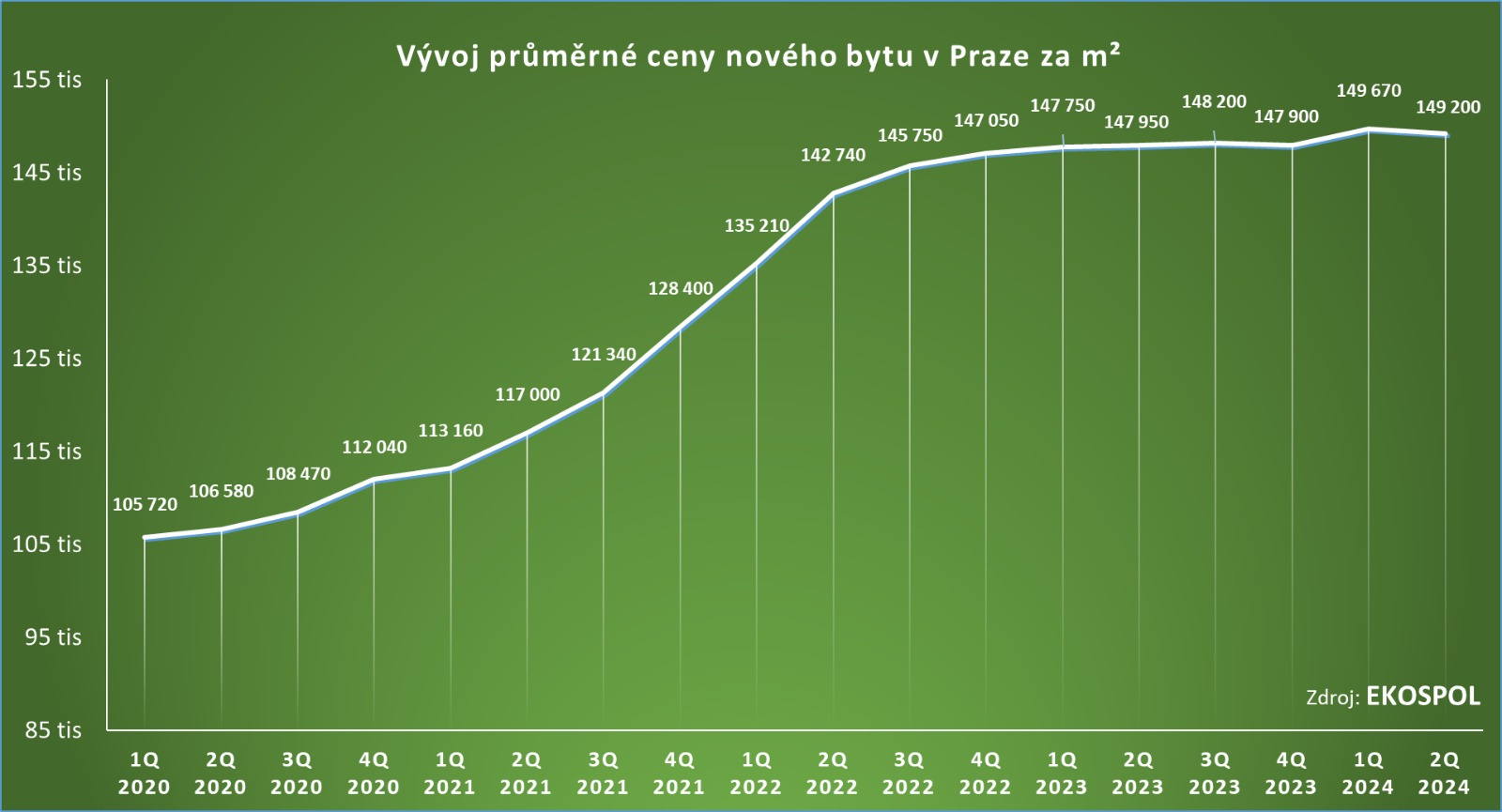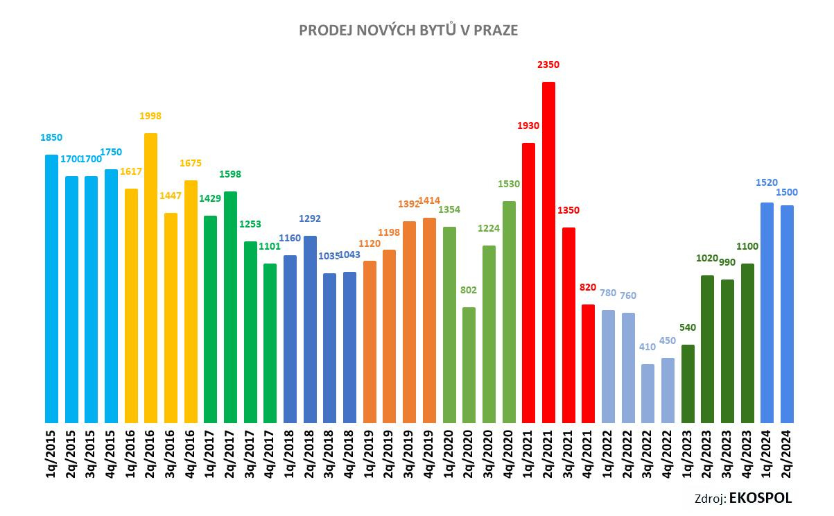V Praze se v 1. pololetí 2024 prodalo už 3020 nových bytů, meziročně o 52 % více. Během celého roku 2023 přitom prodali developeři v Praze 3650 nových bytů, což představovalo meziroční růst o 52 %. „Centrální banka na konci loňska začala snižovat základní úrokové sazby, na což navázaly i komerční banky, byť na tak razantně. Hypoteční sazby klesly, což vedlo k oživení realitního trhu. Výrazný vliv na zvýšeném zájmu kupujících měl také návrat cenově dostupných bytů trh, kde jsme nabídli cenu za čtvereční metr o několik desítek tisíc korun nižší než celopražský průměr,“ říká generální ředitel Ekospolu Evžen Korec.