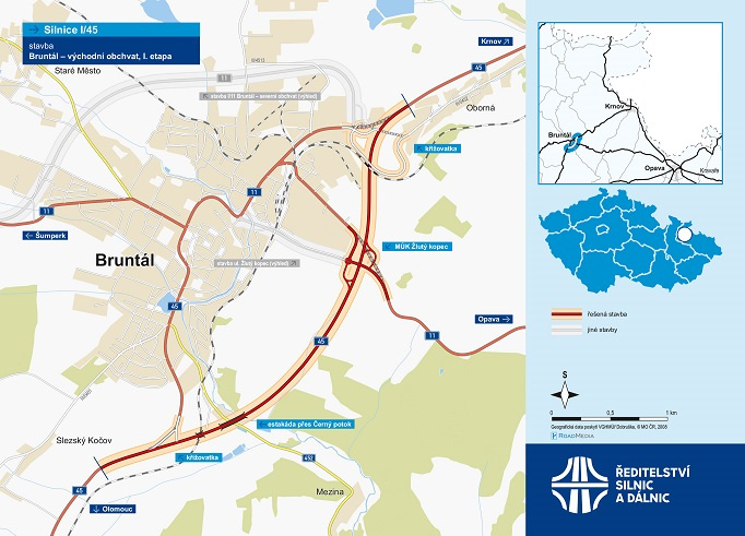 „Silnice I/45 končí hraničním přechodem Krnov – Pietrowice. Tuto severojižní trasu využívá vedle vnitrostátní tranzitní dopravy také ta mezinárodní. Parametry této silnice ale už naprosto neodpovídají jejímu dopravnímu významu a zatížení. Jen centrem Bruntálu projede zhruba 14 000 aut denně, z toho 2400 kamionů. Východní obchvat I/45 je první etapou prací, jejichž cílem je zbavit město Bruntál tranzitní dopravy. Definitivní řešení by v budoucnu měl přinést severní obchvat, který vyvede dopravu mimo zástavbu silnici I/11,“ dodává generální ředitel ŘSD Radek Mátl.